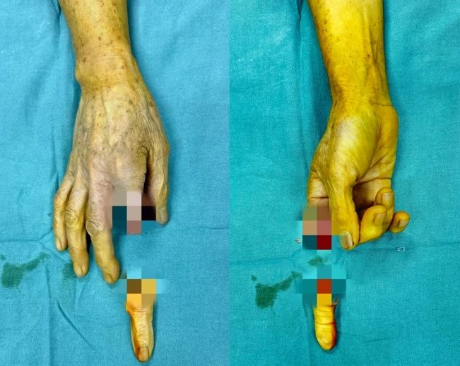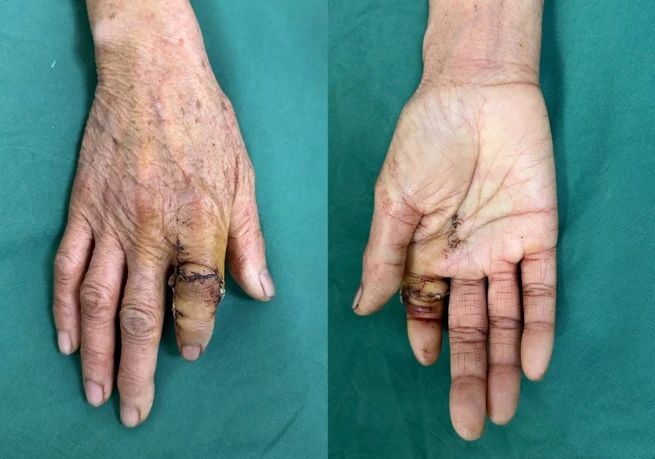 患者是一名女士,58歲,在家勞作時,不慎被機器皮帶絞傷右手食指,造成食指完全斷離,情況緊急。家人迅速將斷裂的手指包好,帶著患者來我院就診。